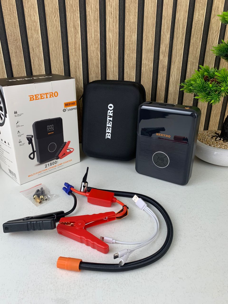 هذا الجهاز الذكي يجمع بين القوة، الأمان، والراحة — يمكنك تشغيل سيارتك، نفخ الإطارات، وشحن أجهزتك الإلكترونية في أي وقت وأي مكان.