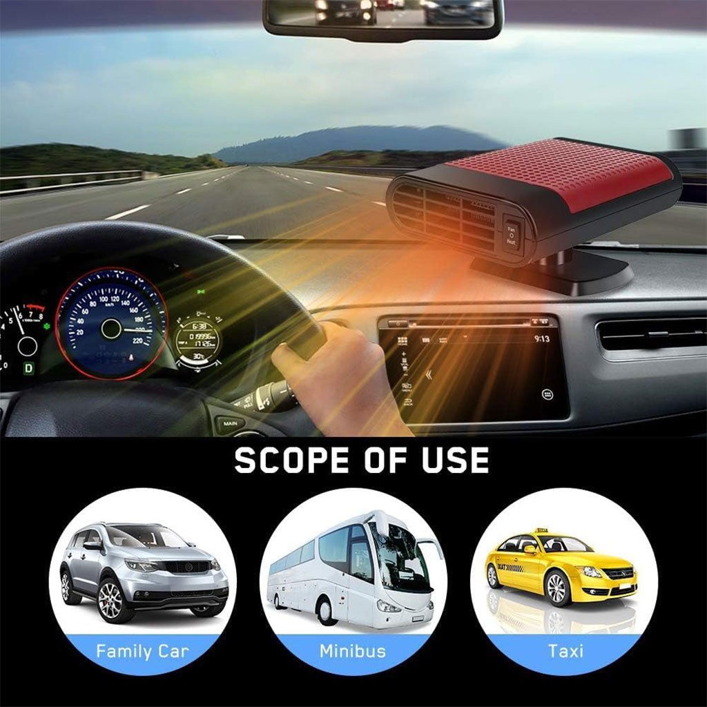 احصل على الراحة المثالية داخل سيارتك في جميع الظروف الجوية مع هذا السخان والمروحة متعددة الوظائف، المصمم لتدفئة الهواء في الشتاء أو تجديده في الصيف بسهولة تامة.