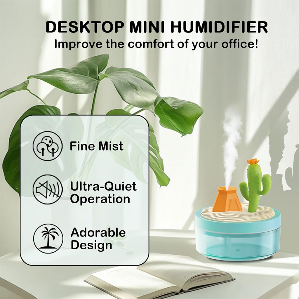 تصميمه المميز بشكل منظر طبيعي مع بركان وأشجار جوز الهند يضيف لمسة جمالية فريدة، مع أداء قوي يمنحك الرطوبة التي تحتاجها في المساحات الصغيرة.