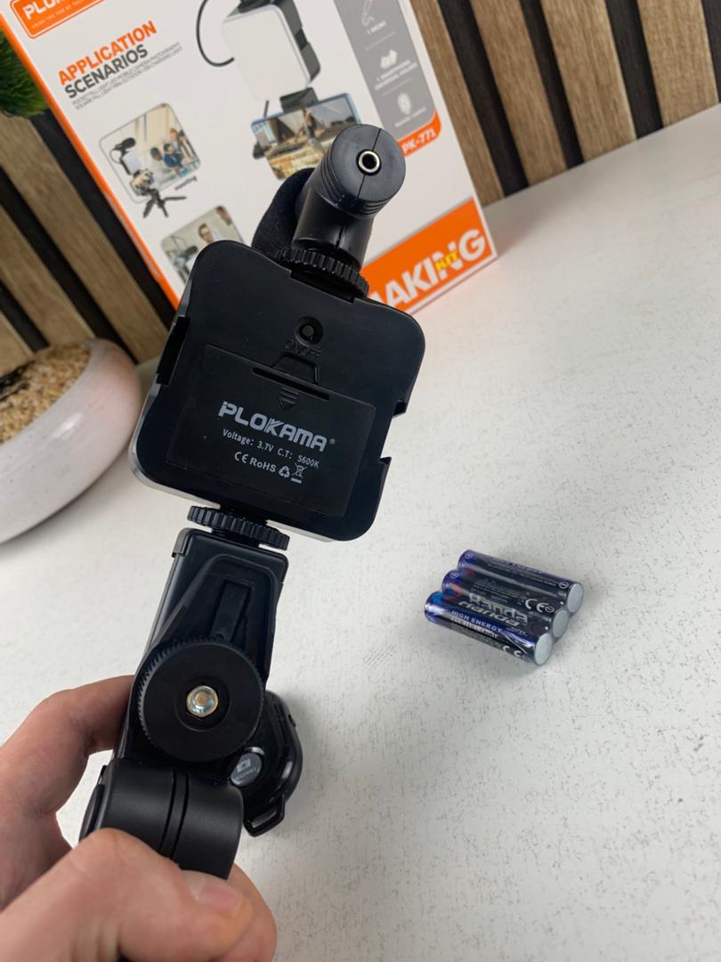 نظام إضاءة LED، ميكروفون احترافي، وحامل هاتف قابل للتعديل — إعداد متكامل لتصوير فيديو عالي الجودة في أي مكان.