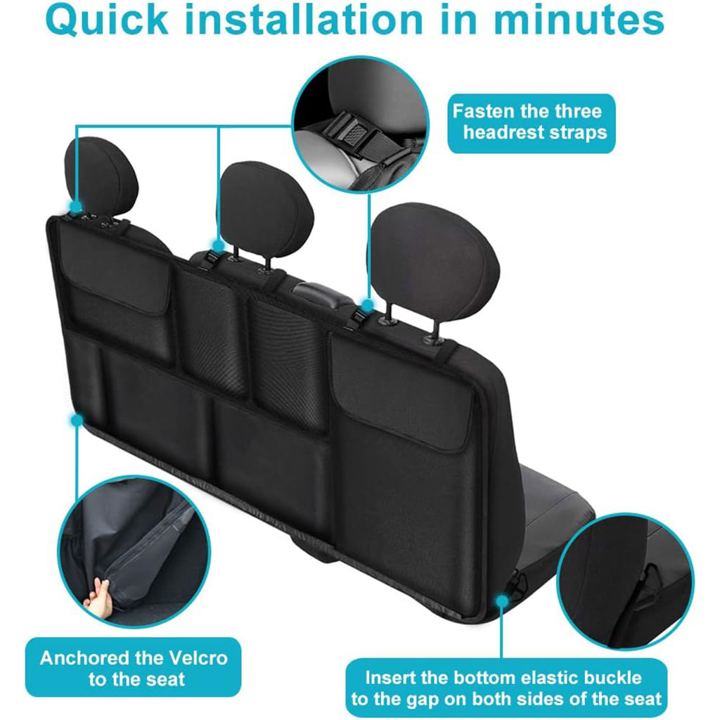 💪 ثبات معزّز ثلاثي التقنيةنظام تثبيت ثلاثي: فيلكرو قوي + حزام علوي + حلقتان مطاطيتان محدثتان لثبات مثالي حتى عند حمل الأغراض الثقيلة.التصميم الجديد يمنع انزلاق المنظّم حتى على المقاعد الجلدية حيث لا يلتصق الفيلكرو عادةً.🧩 سعة تخزين كبيرة ومنظمةيحتوي على جيوب متعددة بأحجام مختلفة لتخزين الأدوات، القفازات، زجاجات المياه، الكتب والمزيد.جيب كبير مخفي بمقاس 45×30 سم مثالي لتخزين الأغراض الكبيرة مثل طفايات الحريق أو معدات السفر.🧼 خامة عالية الجودة وسهلة التنظيفمصنوع من قماش بوليستر PVC سميك ومتين مقاوم للتمزق والماء وخالٍ من الروائح.آمن للأطفال، قابل للغسل في الغسالة أو يمكن تنظيفه بسهولة بمنديل مبلل ليستعيد مظهره الجديد في ثوانٍ.🚙 مناسب لمعظم السياراتالأبعاد: 100 × 48 سم – يناسب أكثر من 95٪ من سيارات SUV، الميني فان، والصالون.مثالي للرحلات، التخييم، أو العائلات مع الأطفال لتنظيم الصندوق وتوفير مساحة إضافية.⚙️ تثبيت سريع بثلاث خطوات فقطثبّت المشابك الثلاثة القابلة للتعديل حول مساند الرأس.ثبت الفيلكرو خلف المقعد.أدخل الحلقات المطاطية الجانبية بين المقاعد.✨ منظّم Ezilif – الحل الذكي الذي يحافظ على سيارتك مرتبة دائمًا!