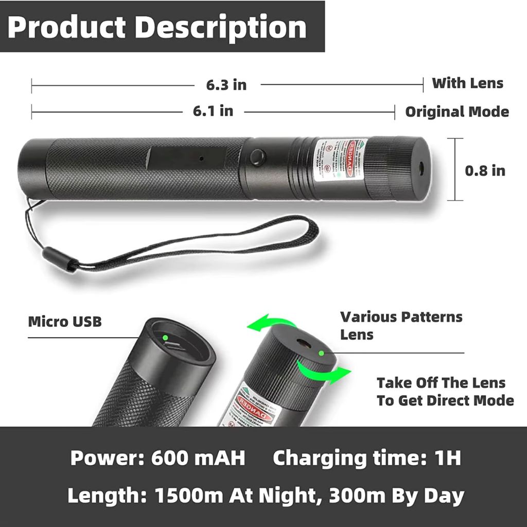 Pointeur Laser Puissant Multifonctions 2000 Mètres - مصباح ليزر قوي للمسافات الطويلة متعدد الوظائف