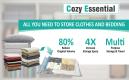 Rangez en 3 étapes faciles: pliez soigneusement et placez vos articles (couettes, linge ou vêtements) dans le sac sous vide Compactor, ouvrez la valve universelle, retirez l’air avec un aspirateur et fermez le sac. En moins d’une minute, vous avez économisé 75% de votre espace de rangement !
