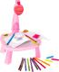 Une table avec un projecteur6 superpositions avec 6 images à redessinerÉponge abrasiveCarnet de dessin pour photosSet de 12 marqueursMatière : plastiqueÂge de l’enfant : 3+Alimentation : 3 piles AA (non incluses)Dimensions :