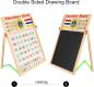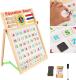 Se compose de deux côtés de tableau noir: tableau blanc et tableau noir.Équipé d’un boulier pour apprendre et compter.Livré avec craie et gomme.Le tableau blanc peut être écrit avec des marqueurs ou attaché avec des chiffres/lettres magnétiques.Le tableau noir peut être écrit avec des craies.Type: jouet de tableau noirMatériau: boisL’emballage comprend: