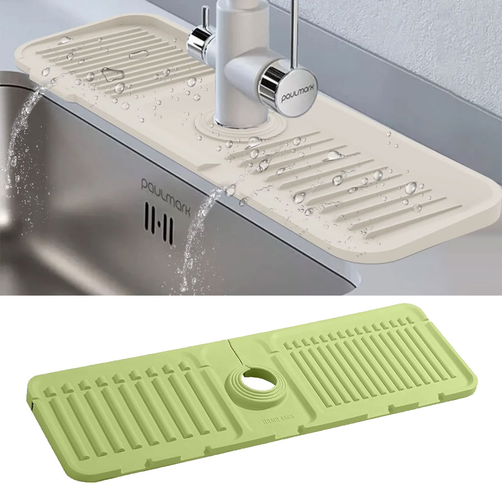 Design multifonction : utilisez-le comme tapis de séchage pour robinet, plateau d’évier de cuisine, porte-savon à vaisselle ou organisateur de cuisine.Séchage plus rapide : le design incliné garantit que l’eau s’écoule rapidement dans l’évier, permettant à votre évier de cuisine de sécher plus rapidement.Durable et réutilisable : fabriqué à partir de matériau en silicone souple, notre tapis de drainage est flexible, pliable et durable.Utilisation sûre : notre tapis de vidange est complètement sûr pour une utilisation dans la cuisine, la salle à manger ou tout autre environnement domestique.Ajustement personnalisable : l’ouverture peut être facilement coupée pour s’adapter à la plupart des robinets, ce qui la rend adaptée à n’importe quelle configuration de cuisine.