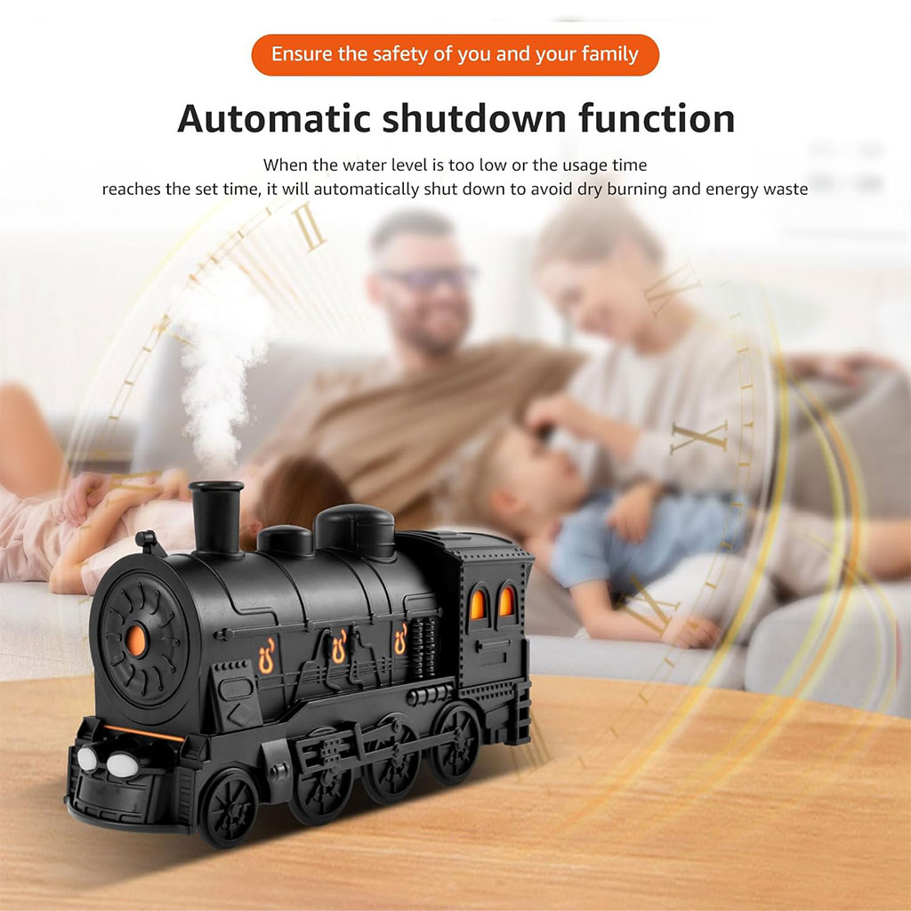 يأتي الجهاز مزوّدًا بإضاءتين ملونتين (أزرق بارد / لهب دافئ) لتمنح الجو لمسة واقعية وساحرة كما لو كان قطارًا حقيقيًا ينبعث منه البخار.